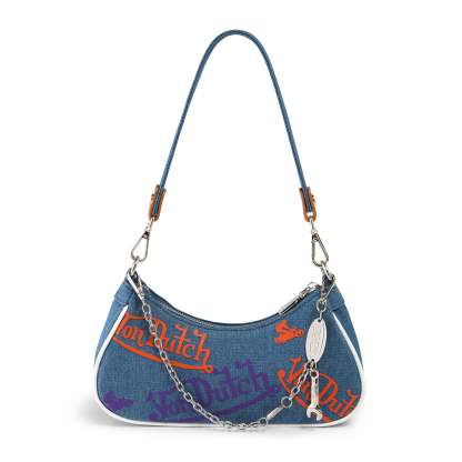 Orange & Purple Multi-Logo Denim Shoulder Bag