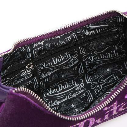 Von Dutch Purple Rhinestone Velvet Shoulder Bag
